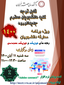 جلسه معارفه دانشجویان جدیدالورود فیزیک و فیزیک مهندسی روز سه شنبه ۱۱ آبان ماه ۱۴۰۰ به صورت مجازی و به همت انجمن های علمی دانشجویی فیزیک و فیزیک مهندسی برگزاری گردید.